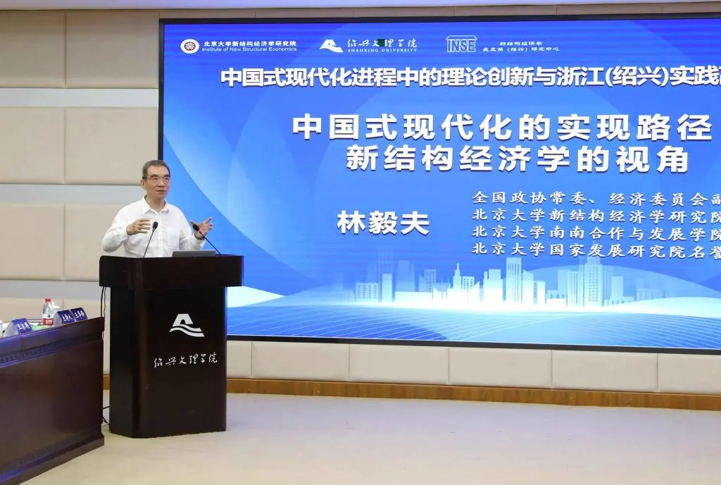 7月23日,北京大学新结构经济学研究院、新结构经济学研究联盟、新结构经济学长三角(绍兴)研究中心、绍兴文理学院和绍兴市人民政府在绍兴联合举办中国式现代化进程中的理论创新与浙江(绍兴)实践学术研讨会,共同探讨新时代中国式现代化进程中的理论创新与浙江实践。北京大学新结构经济学研究院院长林毅夫教授,北京大学新结构经济学研究院国内发展合作部主任赵秋运,北京大学新结构经济学研究院特聘副研究员张骞,绍兴市委副书记、市长施惠芳,绍兴文理学院党委书记汪俊昌,新结构经济学研究联盟机构单位以及来自全国有关高校的70余位专家学者出席会议。北京大学新结构经济学研究院院长林毅夫,绍兴市委副书记、市长施惠芳,绍兴文理学院党委书记汪俊昌等出席开幕式并致辞。