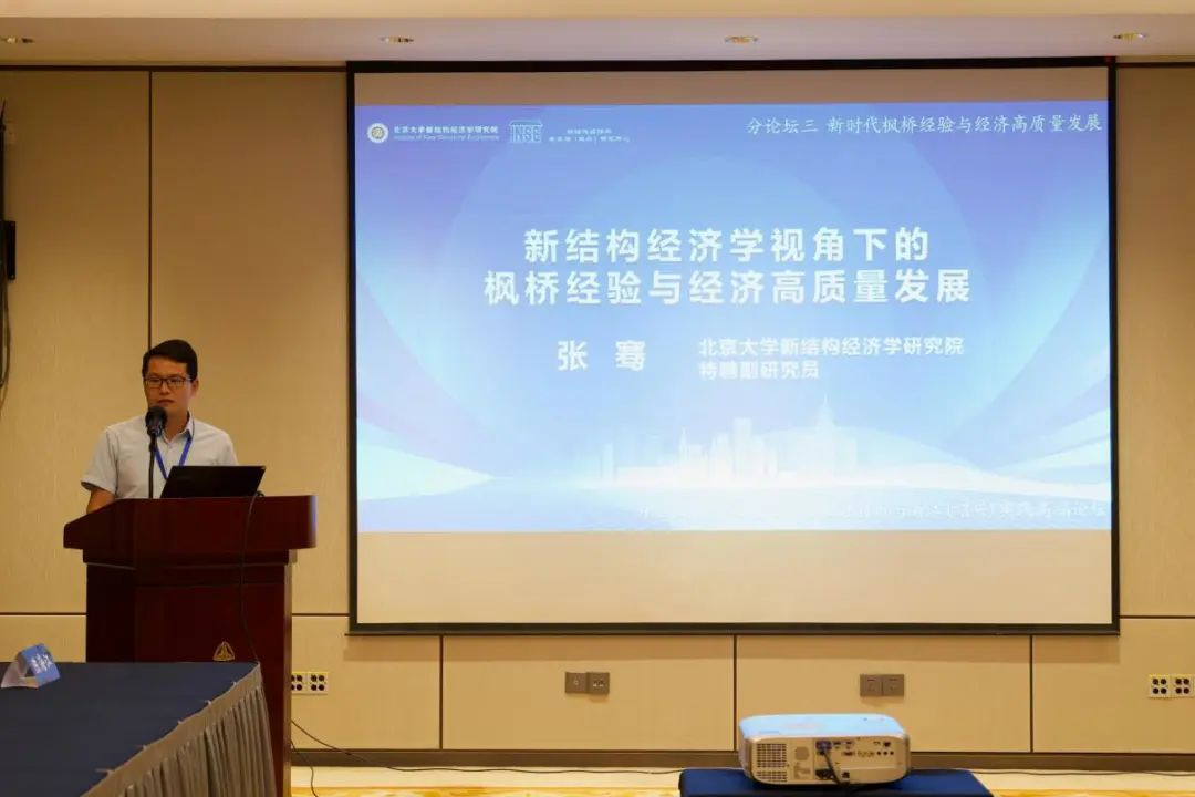 会议还举行了“中国式现代化与经济学理论自主创新:林毅夫与学子交流会”“中国式现代化的浙江(绍兴)实践及经验:八八战略与一号工程”“新时代枫桥经验与经济高质量发展”等分论坛,林毅夫教授与学子们亲切交流,各专家学者积极建言献策。特聘副研究员张骞参加了“新时代枫桥经验与经济高质量发展”这一分论坛,并做“新结构经济学视角下的枫桥经验与经济高质量发展”的报告。在研讨会期间,北京大学新结构经济学研究院、绍兴文理学院和绍兴市人民政府三方对过去五年的合作进行了总结以及对未来即将开展的合作进行了沟通。